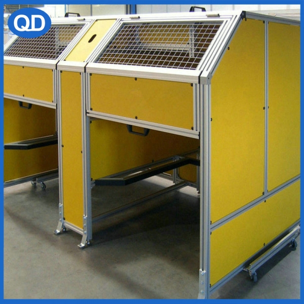 用材:支架采用國標電泳/歐標氧化 工業鋁型材制作,封板可以采用烤漆鐵板/不銹鋼板/有機玻璃/PVC板等制作,配上同系列鋁型材相關配件安裝。